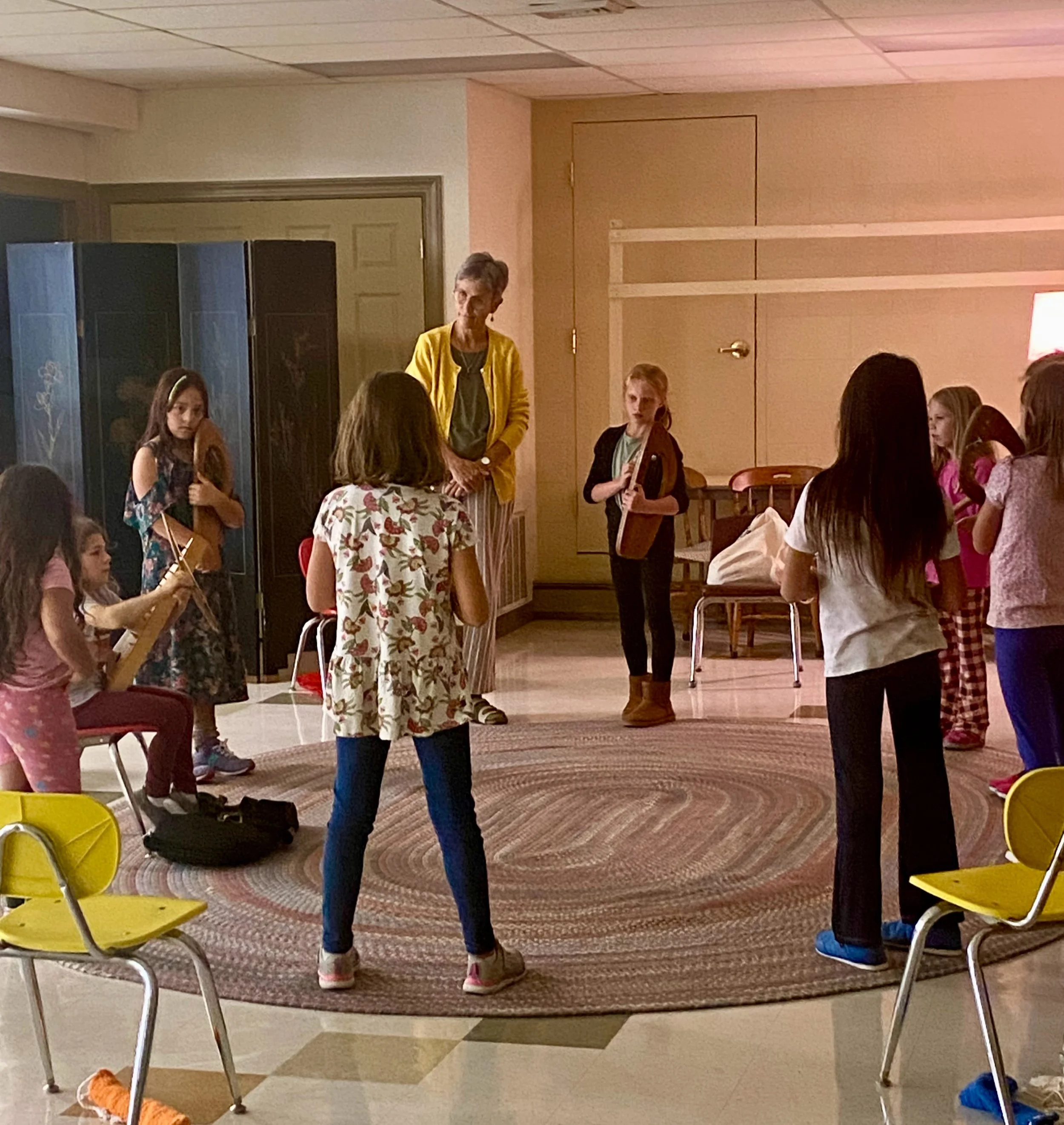 Every day starts with singing. Throughout the day the children explore elements of music with metal, bowed, and wind instruments.
